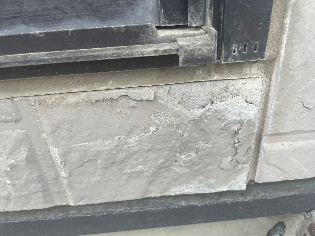 基礎は上に塗っている化粧モルタルが剥離し、基礎が露出している状態でした。