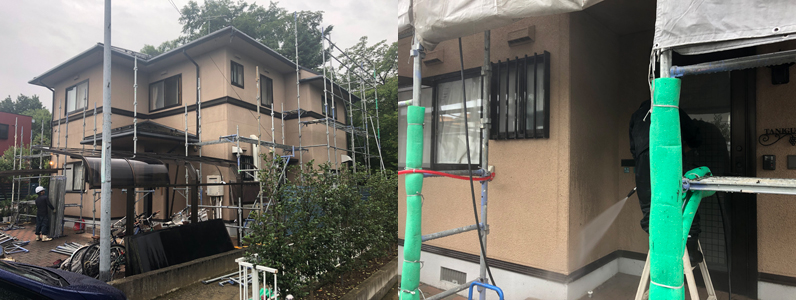 屋根、壁の塗装を行う前に、もちろん高圧洗浄を行いキレイな状態にしてから
